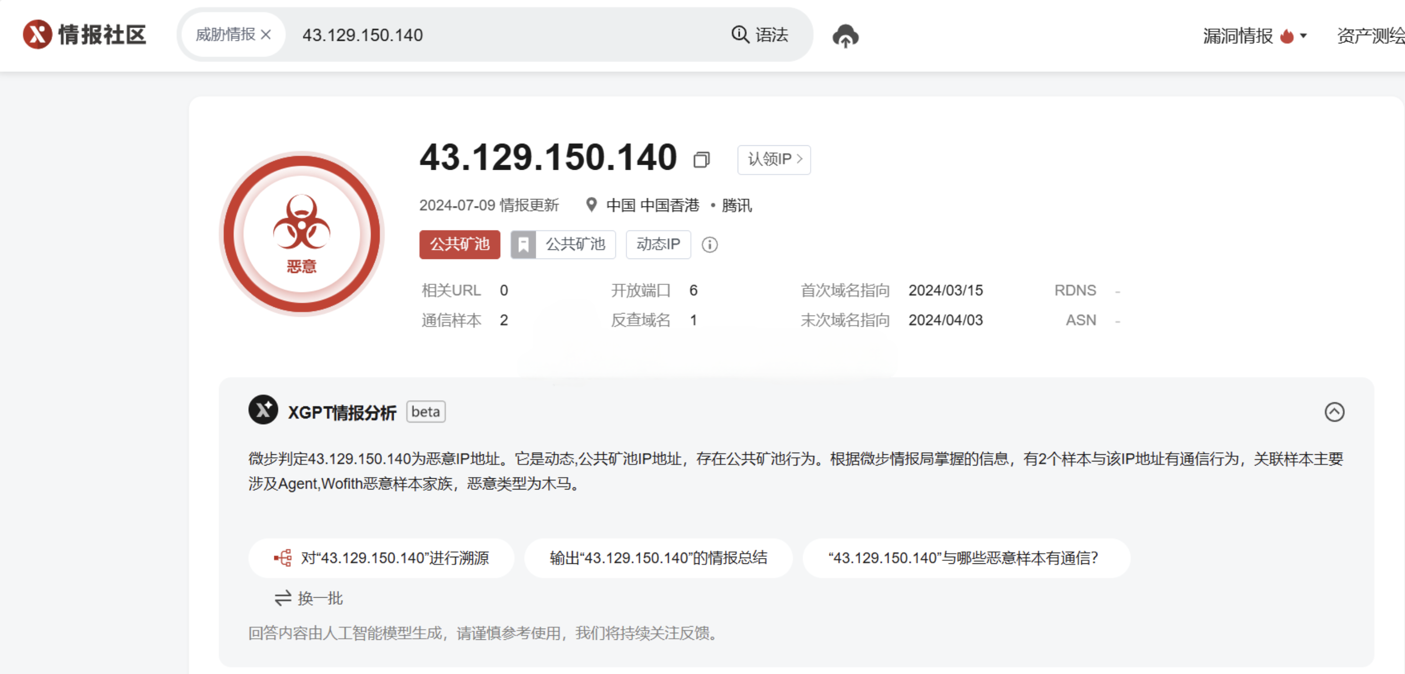 (3)结合威胁情报平台,及时获取恶意 IP 的信息,对已知的恶意 IP 进行批量封禁。