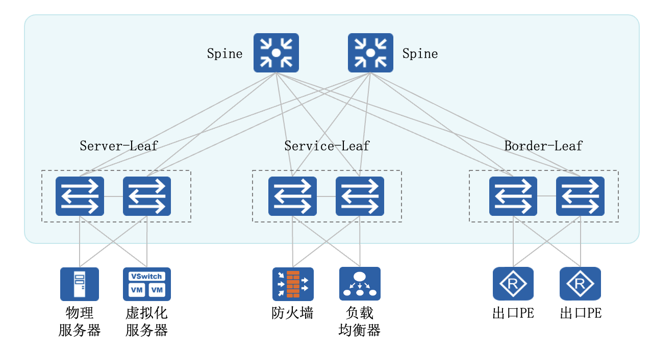12、【说明】某企业数据中心计划进行升级改造,现网拓扑如图2-1所示,通过Spine-Leaf组网,构建数据交换矩阵。